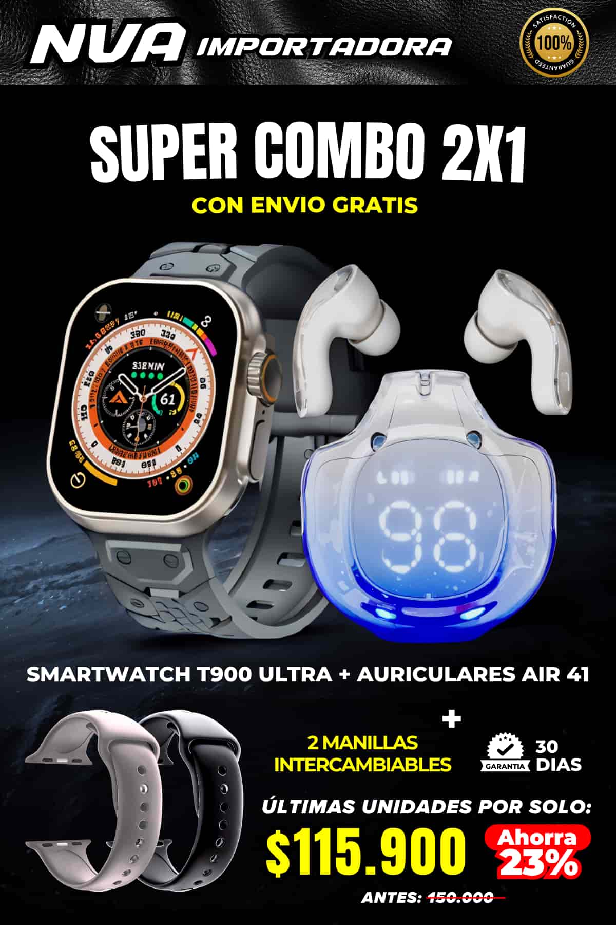 1 Reloj Inteligente T900 ULTRA + 2 Correas para reloj + Auriculares inalámbricos AIR 41 PRO + PAGO CONTRA ENTREGA.