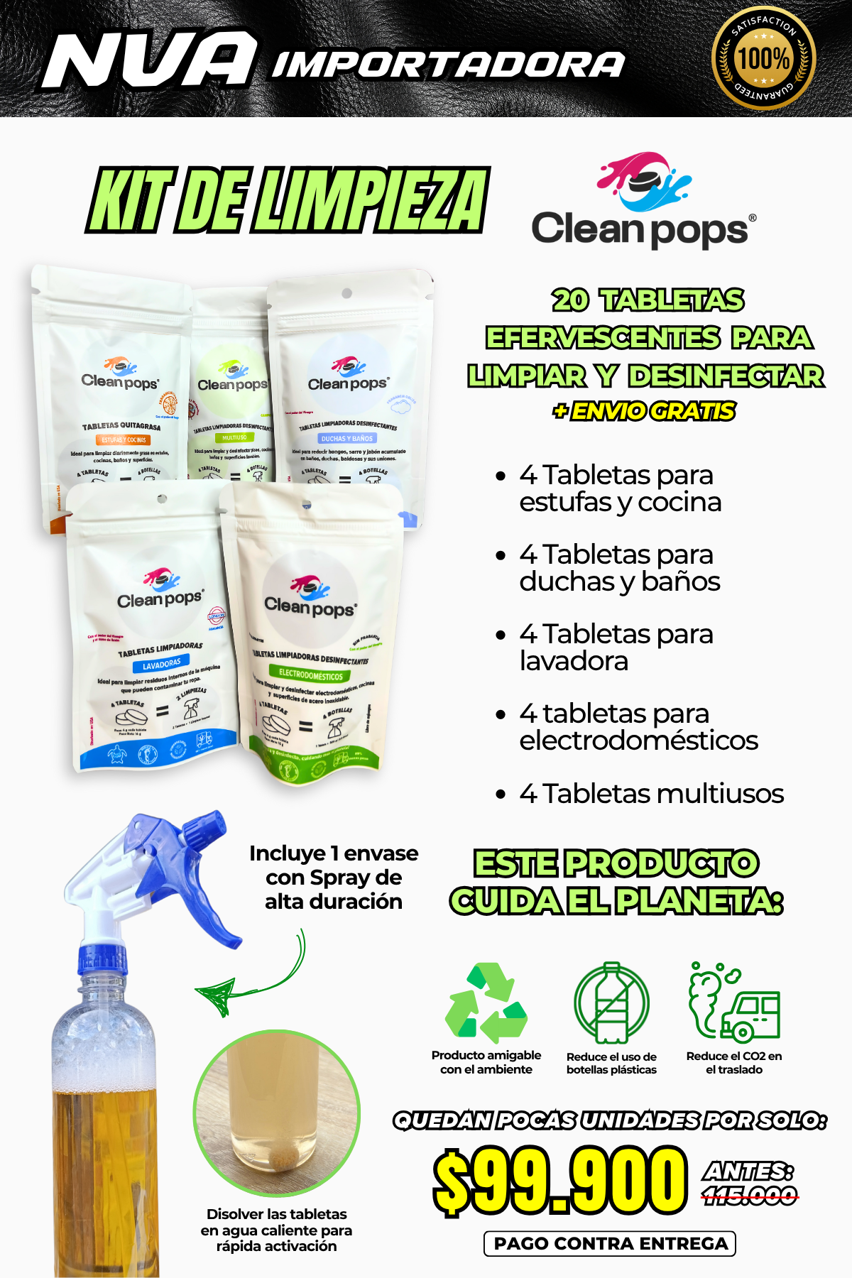 ¡ESTE KIT DE LIMPIEZA CLEAN POPS es lo que necesitas para reducir costos en productos de limpieza, gasto de agua y disminuir las emisiones de CO2!