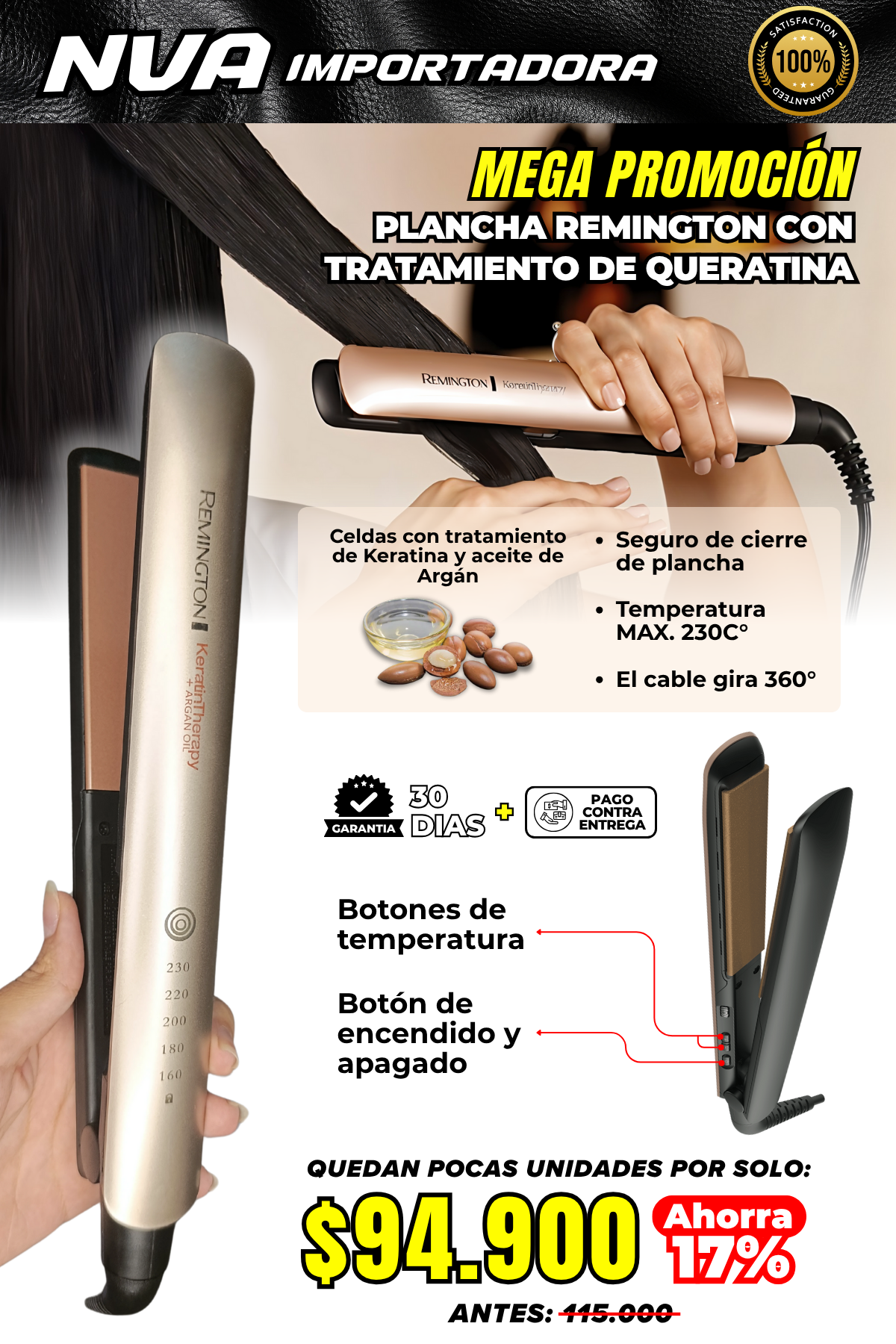 PLANCHA REMINGTON CON TRATAMIENTO DE QUERATINA Y ACEITE DE ARGÁN + PAGO CONTRA ENTREGA.